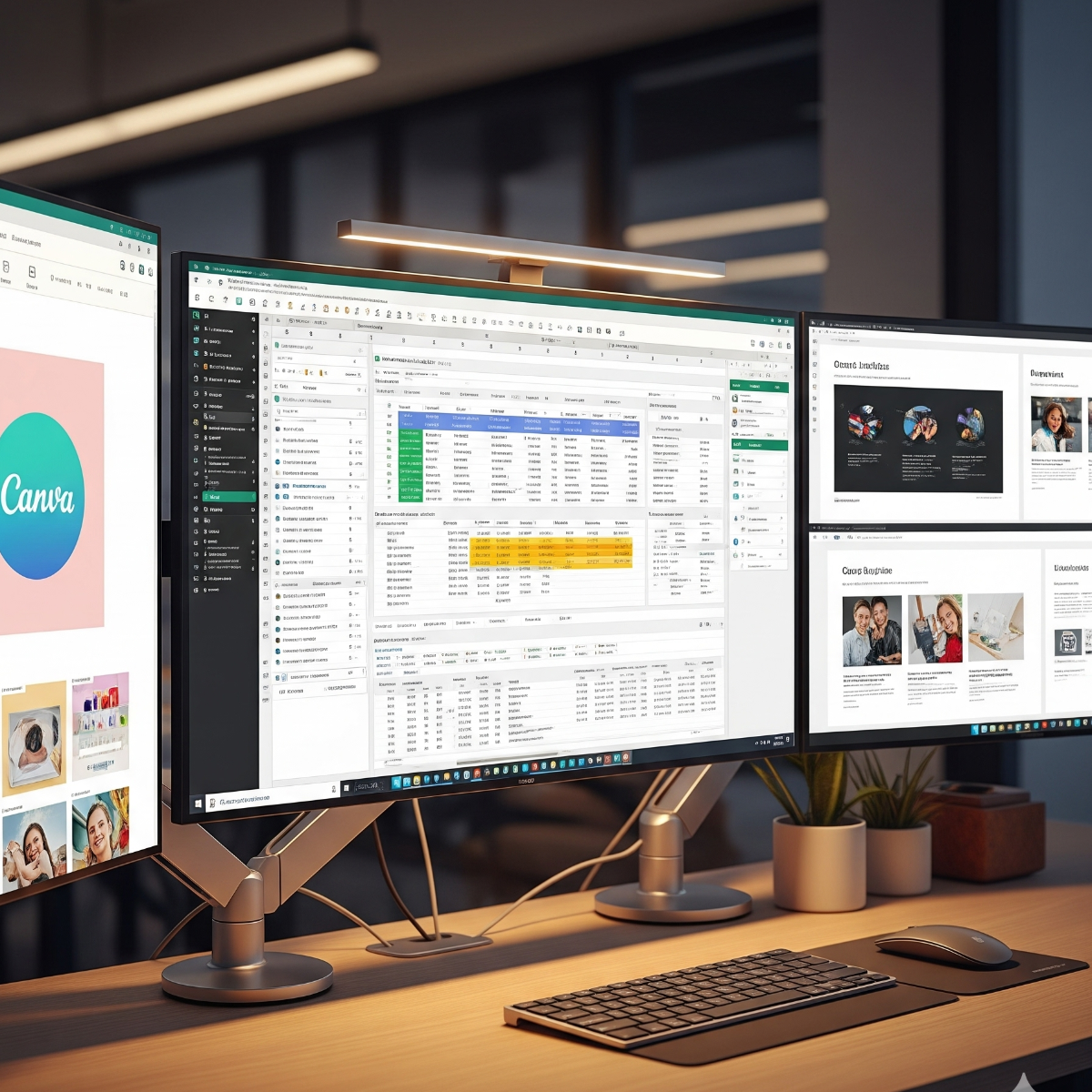 • Canva: Plantillas visuales para presentaciones, flyers, redes sociales y más, editables con tu estilo y colores de marca.